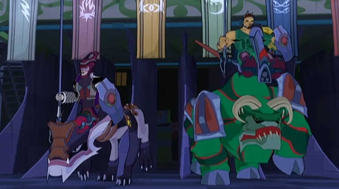 Their evil schemes failing owing to the Dragon Booster, Moordryd assists his father in capturing Beau to turn him into a wraith dragon to use against the gold dragon of legend, not knowing they are one and the same. |